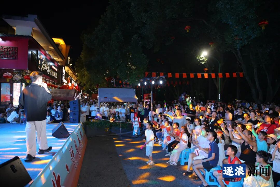 由咸宁市文旅局主办、湖北广播电视台交通广播承办的“桂香缘你·悦见咸宁”月亮湾街区金秋惠民演出季国庆特别节目在此上演。演员们以歌声传递祝福、用舞蹈演绎欢乐,精彩纷呈的节目吸引观众里三层外三层聚集,共同沉浸于中华传统文化的独特魅力之中。
