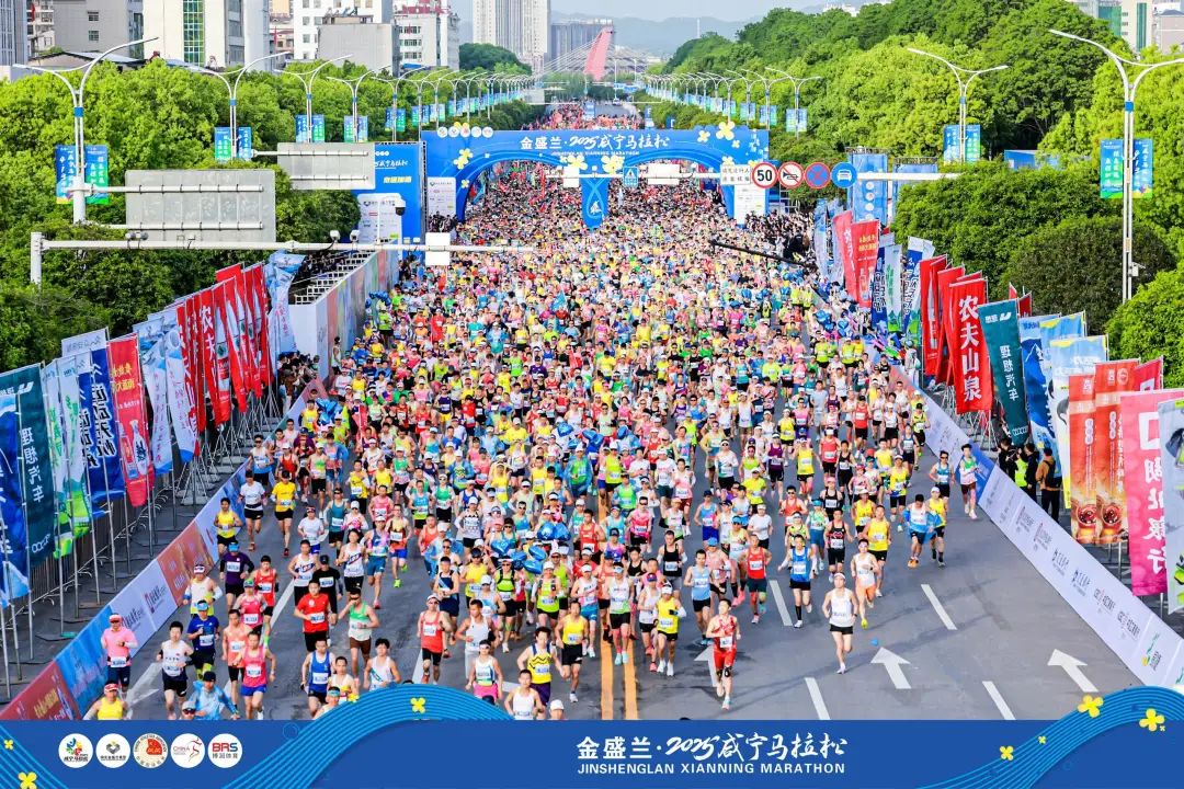绿色发展,泉程加速!4月13日清晨7时,金盛兰·2025咸宁马拉松在咸宁大道人民广场鸣枪开跑。这是咸宁时隔六年再度举办马拉松赛事。来自中国、埃塞俄比亚、肯尼亚、韩国等11个国家和地区的18000名选手齐聚“中国温泉之乡”,用脚步丈量咸宁的生态之美,用激情点燃“花城”的春日活力。本次赛事由中国田径协会进行技术认证,湖北省体育局、咸宁市人民政府主办,咸宁市体育事业发展中心、咸安区人民政府承办,咸宁市相关市直单位协办,湖北省田径协会对赛事进行监管,广州博润体育科技有限公司运营。