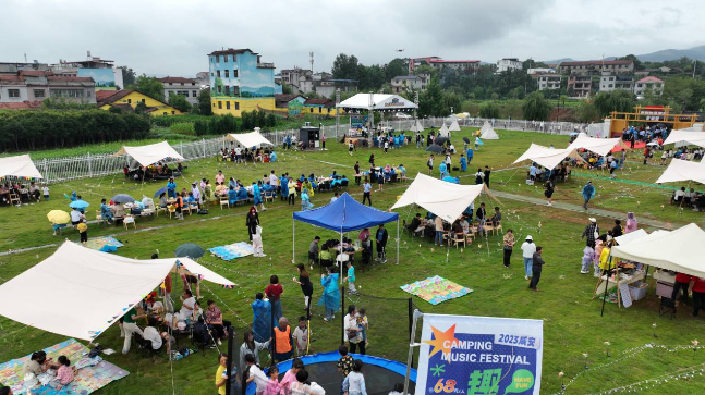 活动现场,轮番上场的乐队和网红大咖带来一曲曲动感十足的歌曲,现场观众伴随着音乐律动,纷纷走上台互动,台下或三两相伴挥臂摇曳,或成群结队与友畅饮,感受乡村美景的自然惬意。