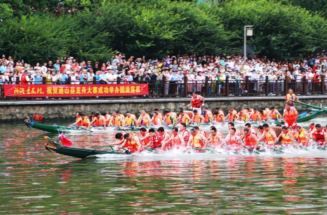 6月21日,赤壁市2023年端午文化龙舟赛在陆水河激情开赛,12支龙舟代表队在500米长的赛道上飞驰竞渡,奏响了一曲乘风破浪、奋楫争先的“水上交响乐”。