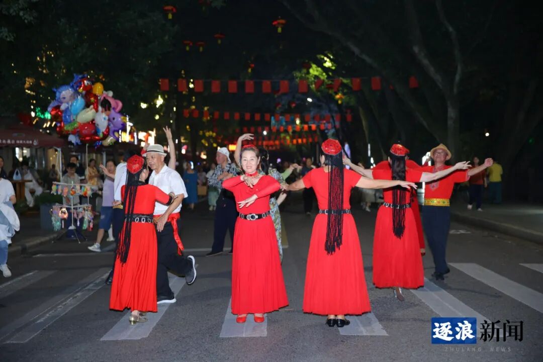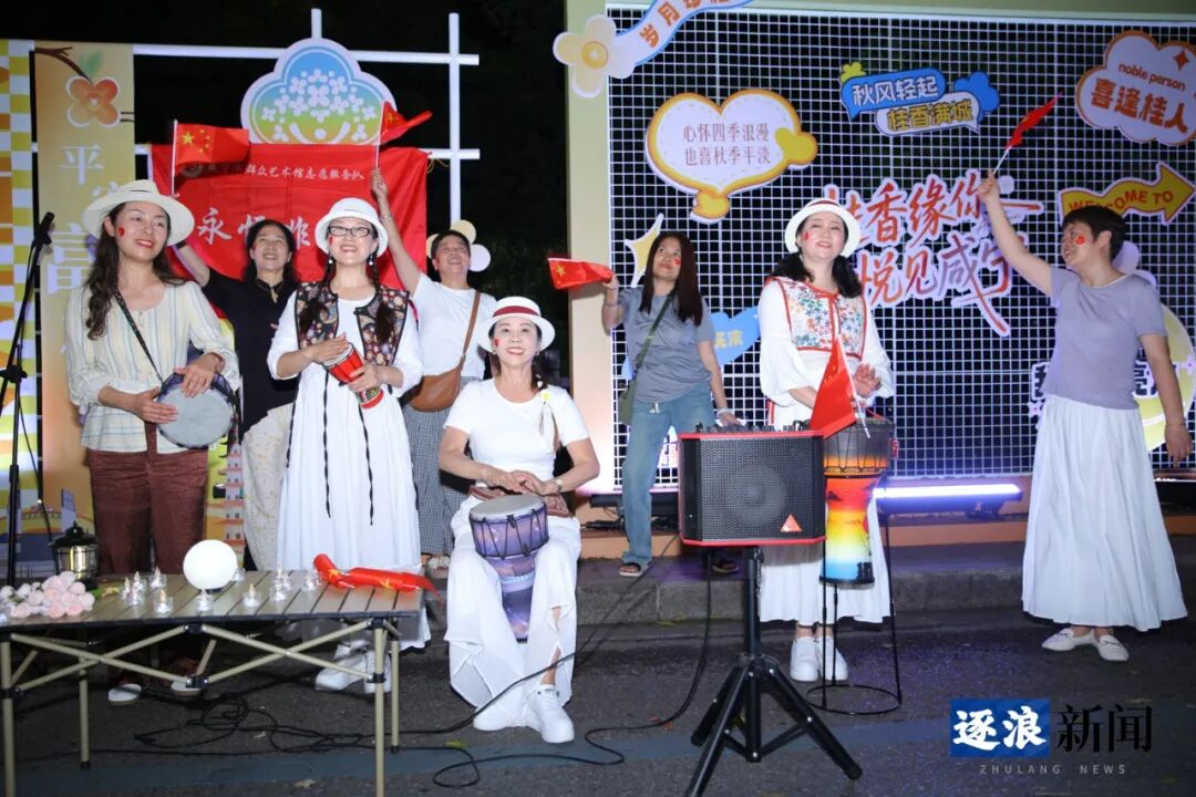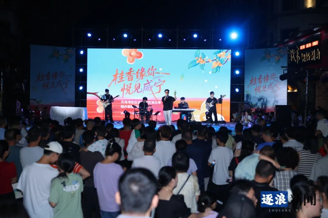 由咸宁市文旅局主办、湖北广播电视台交通广播承办的“桂香缘你·悦见咸宁”月亮湾街区金秋惠民演出季国庆特别节目在此上演。演员们以歌声传递祝福、用舞蹈演绎欢乐,精彩纷呈的节目吸引观众里三层外三层聚集,共同沉浸于中华传统文化的独特魅力之中。