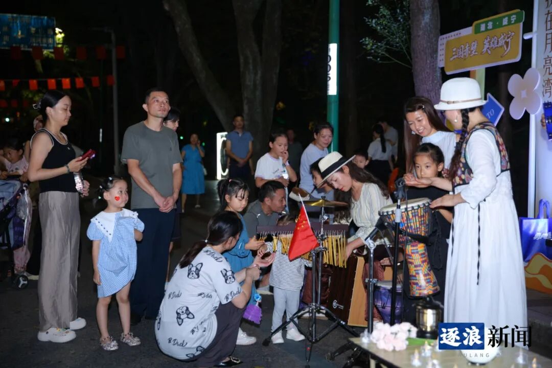 当晚,另一场节目表演“悦见咸宁·盛世和鸣”2025年国庆中秋文化惠民展演活动在该街区同步举行。与此同时,街区内民间团队与个人自发组织的艺术表演同步进行,让现场观众尽享视听盛宴,沉浸式感受双节首日的喜悦氛围。