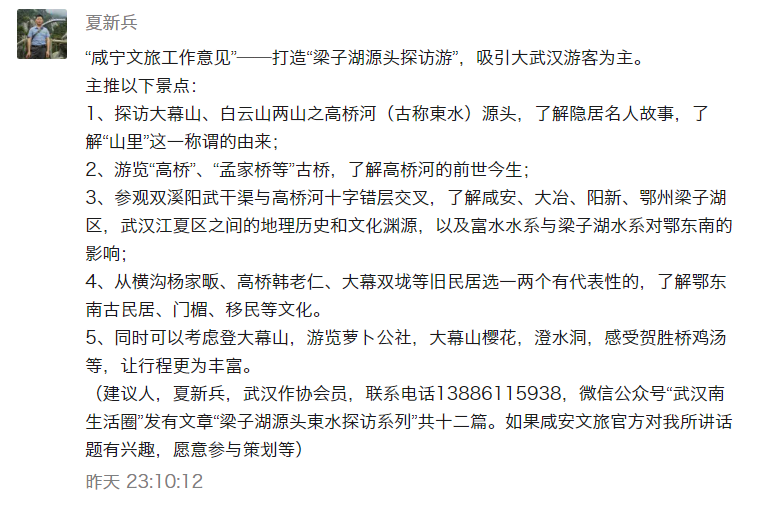 咸宁文旅工作意见征集反馈信息