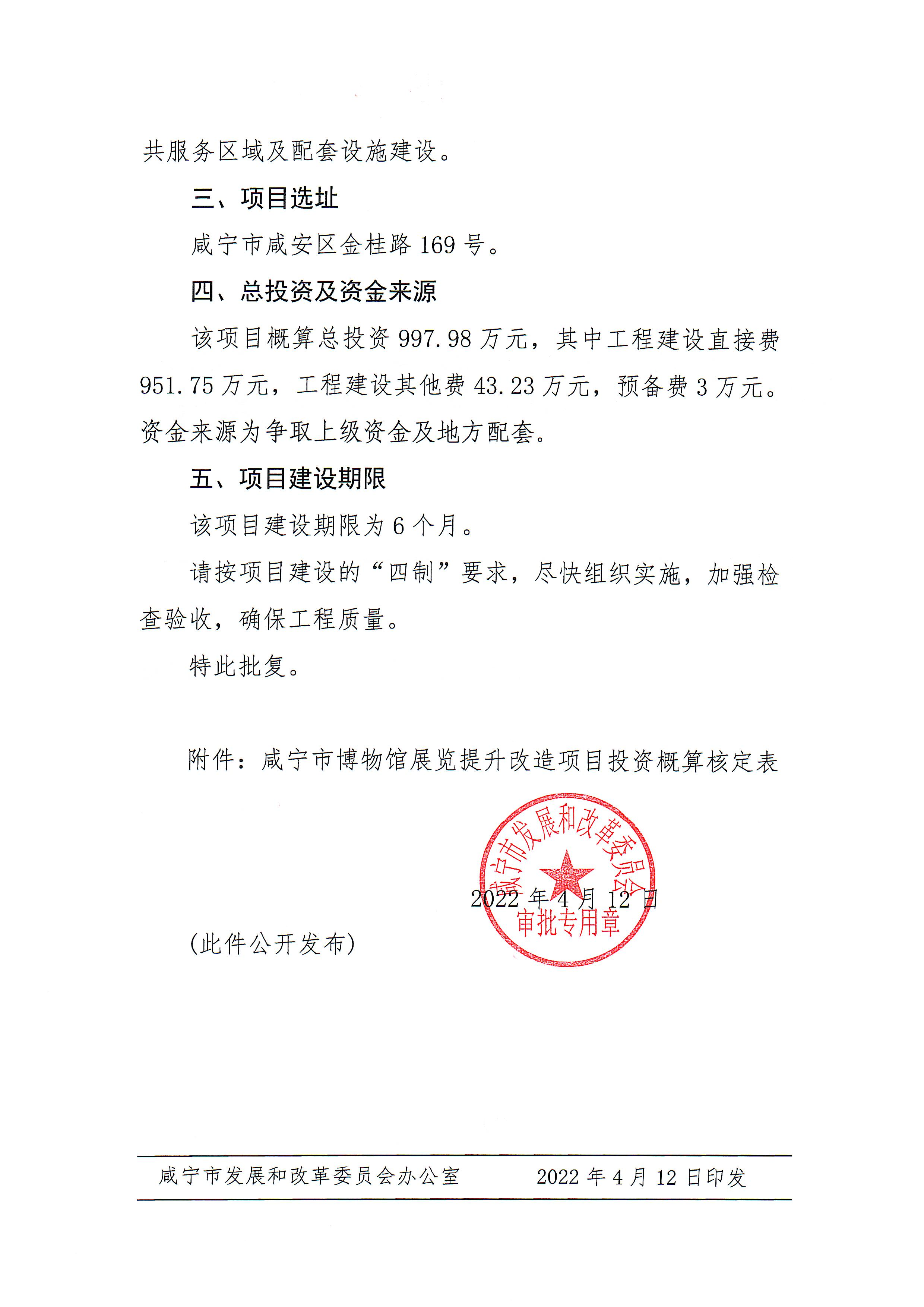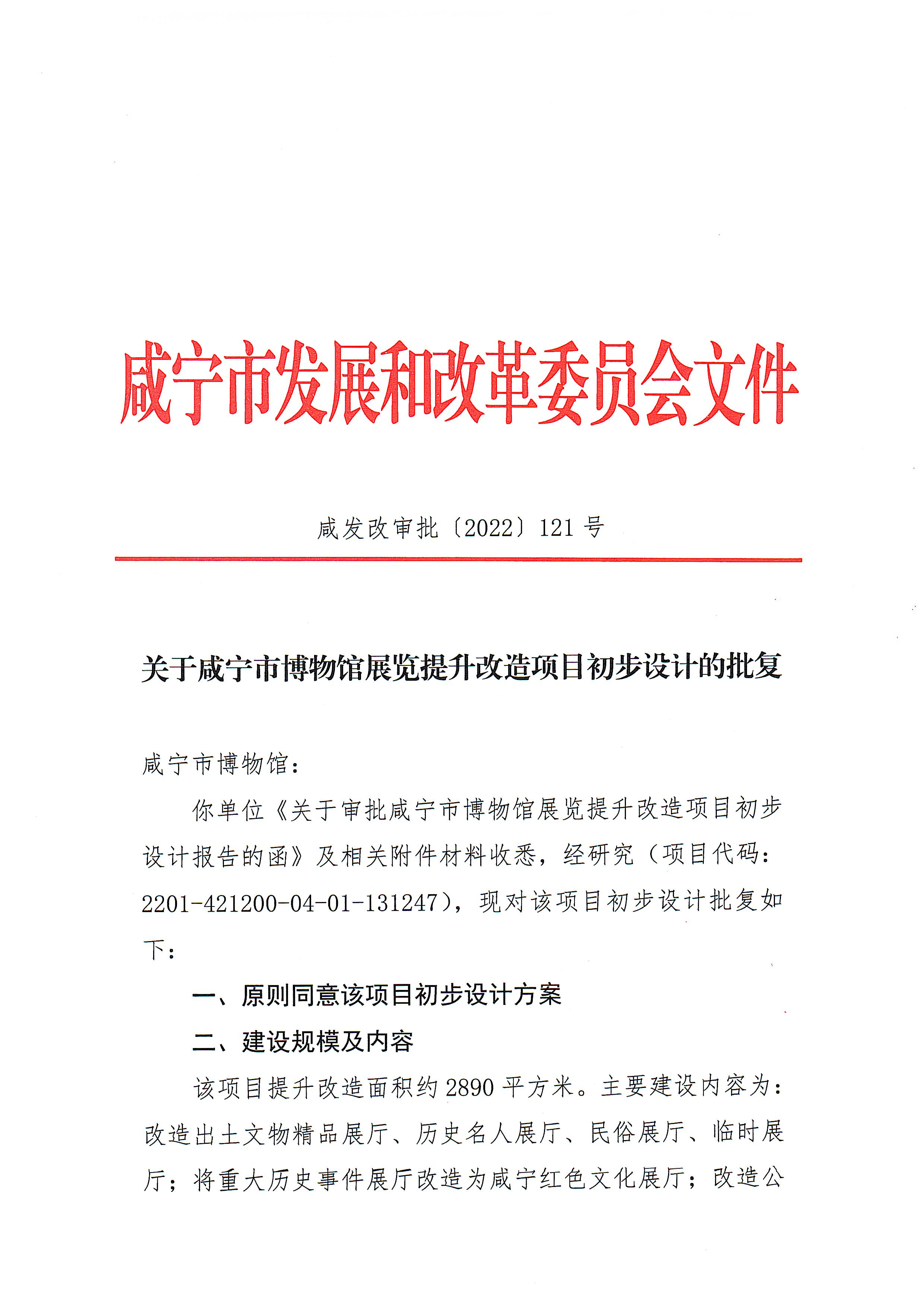 名 称: 市发改委关于咸宁市博物馆展览提升改造项目初步设计的批复 发布日期: 2022年08月10日