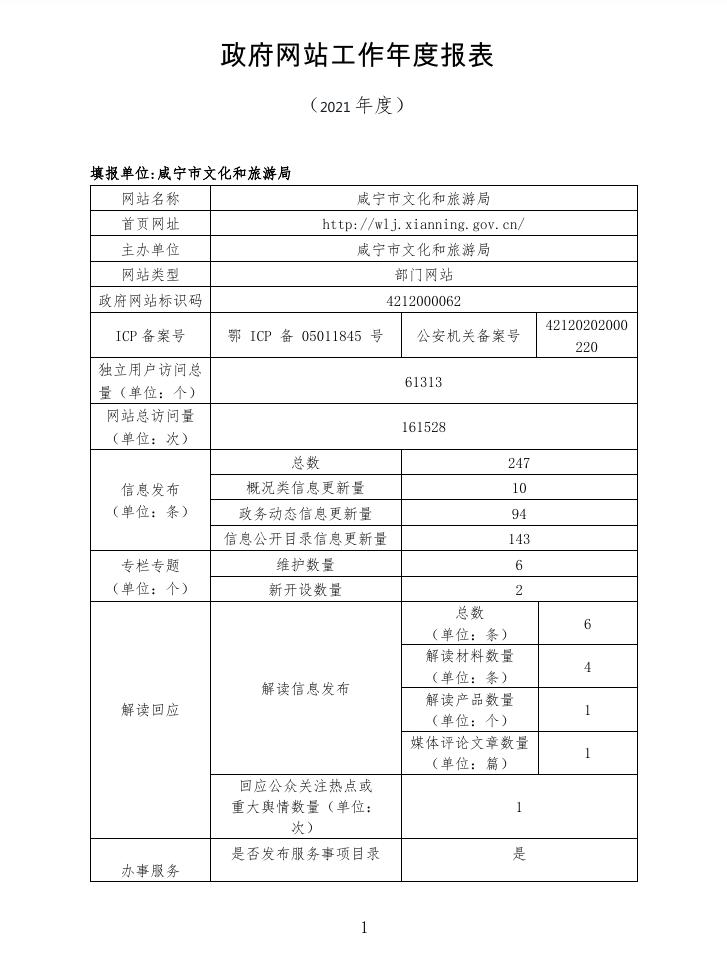 名 称: 2021年政府网站工作年度报表 发布日期: 2022年01月24日