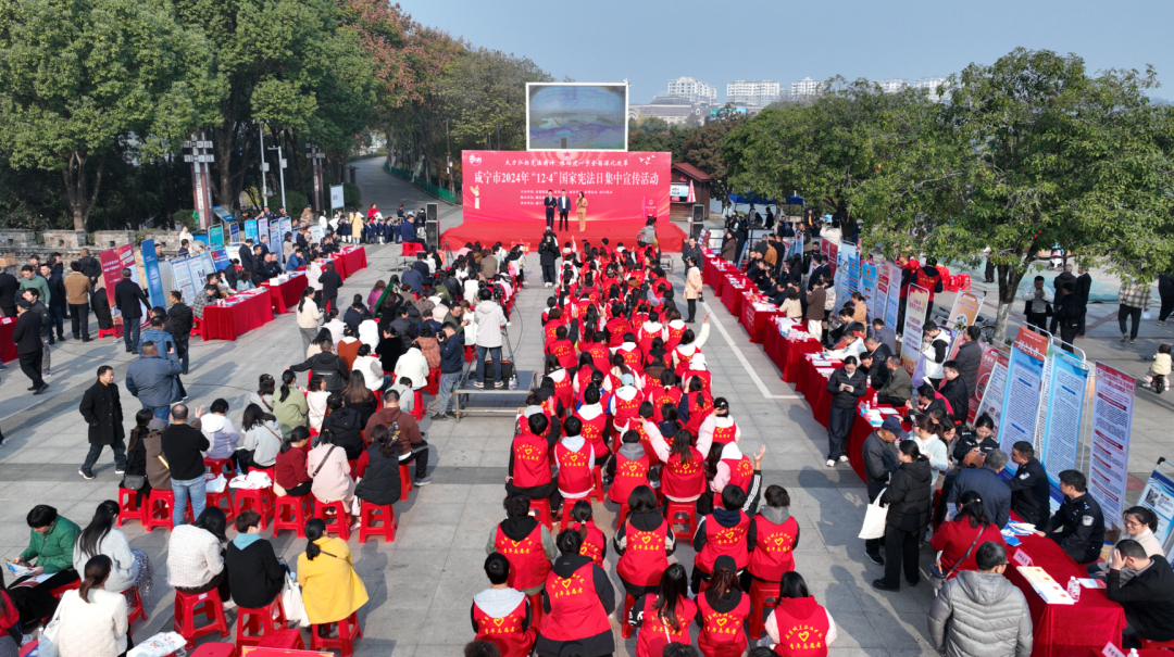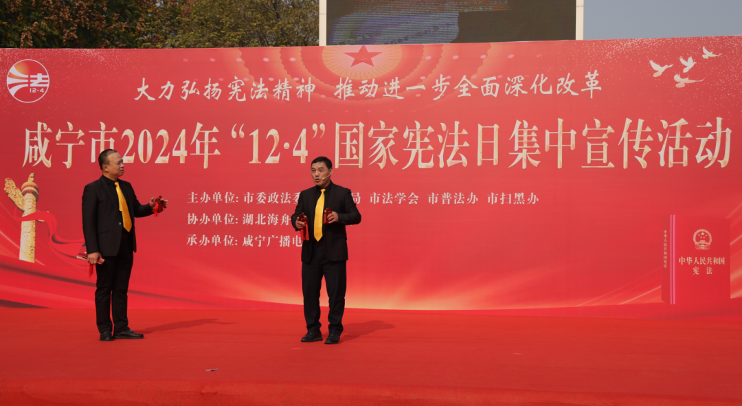 12月3日,咸宁市2024年“12·4”国家宪法日集中宣传活动在十六潭公园广场举行,市委常委、政法委书记谭海华,副市长、市公安局局长张学华出席活动。